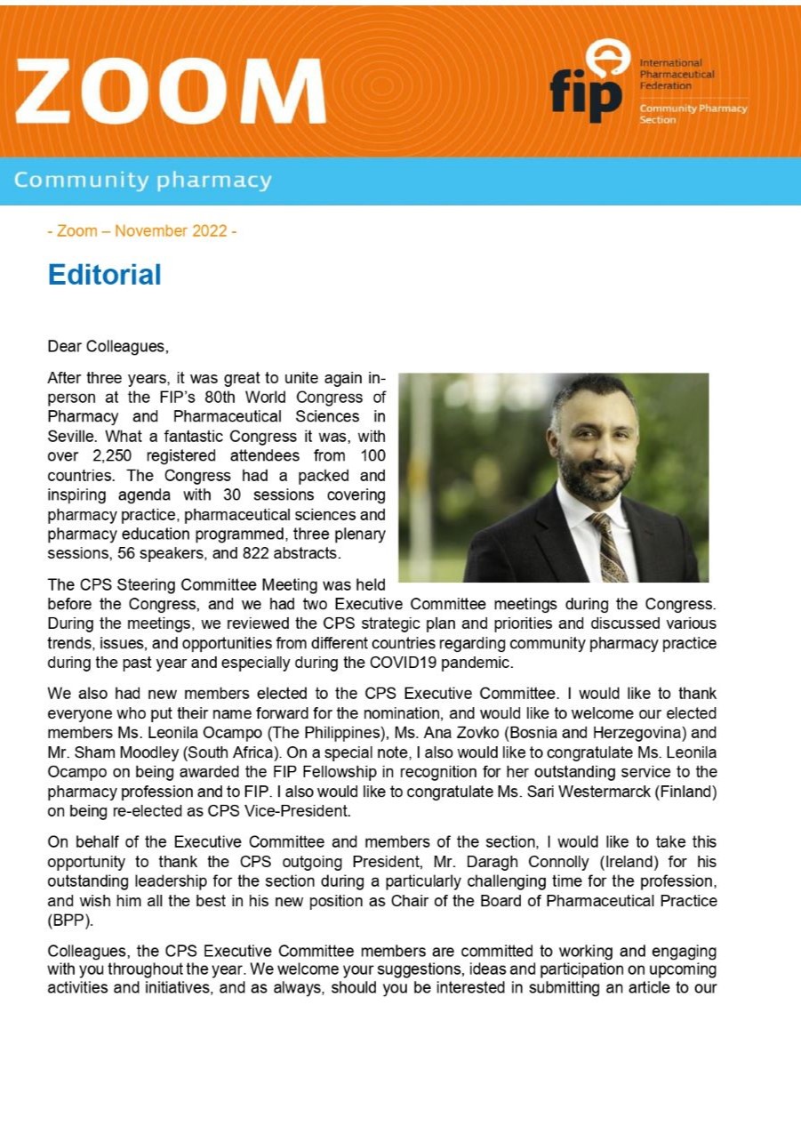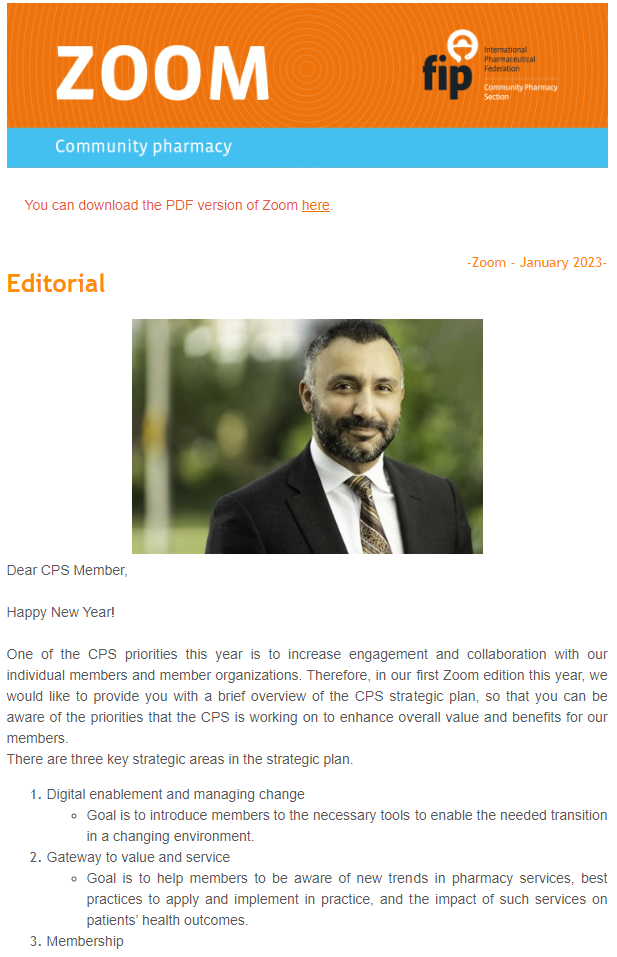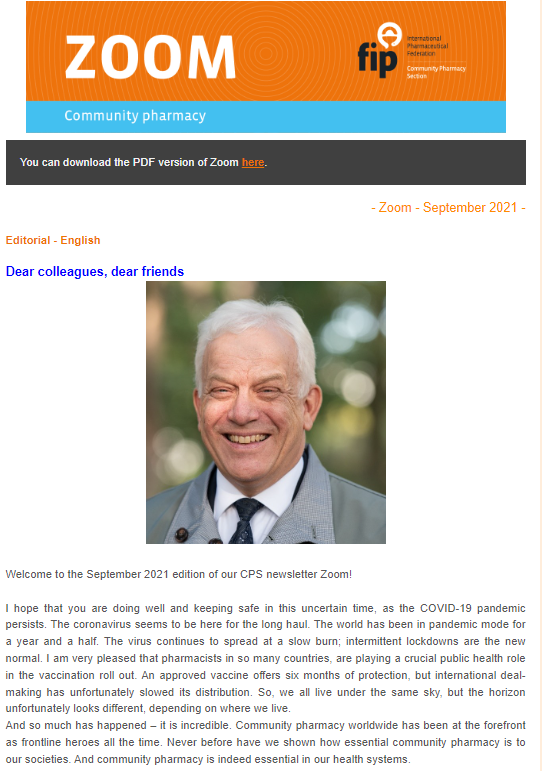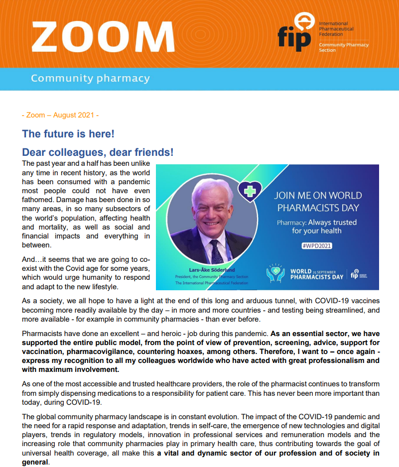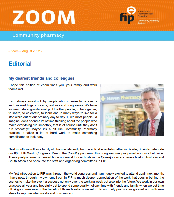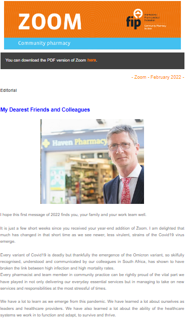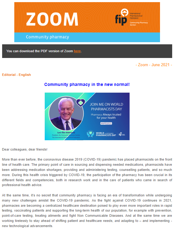 FIP makes it a priority to publish the latest developments in pharmacy practice, pharmaceutical sciences, related global news and prominent events. Our multi-media approach to keeping members, partners and peers informed of what is and will be affecting their area of practice or science is key to keeping information flowing through the FIP network.