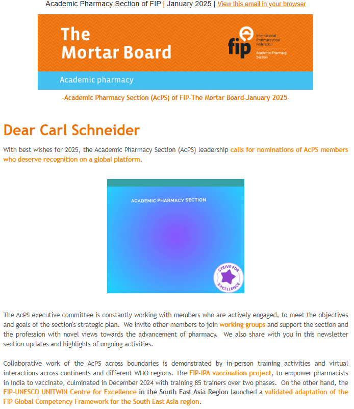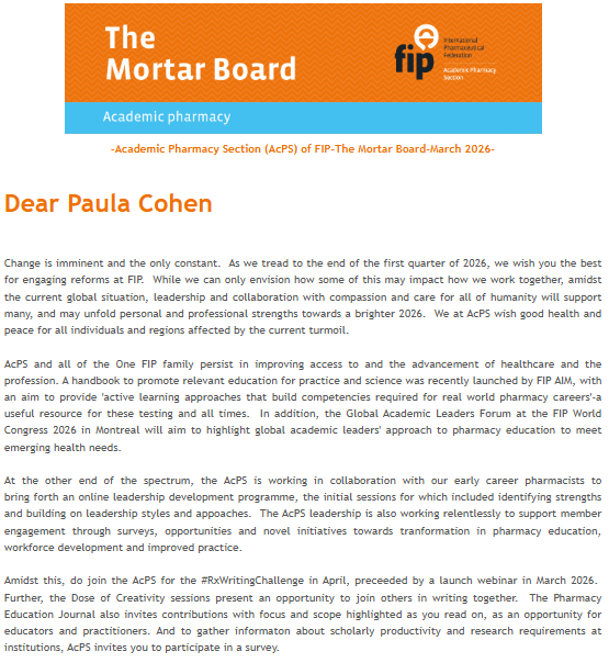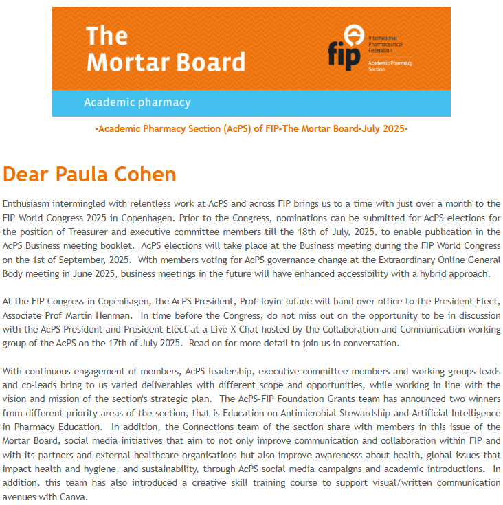 FIP makes it a priority to publish the latest developments in pharmacy practice, pharmaceutical sciences, related global news and prominent events. Our multi-media approach to keeping members, partners and peers informed of what is and will be affecting their area of practice or science is key to keeping information flowing through the FIP network.