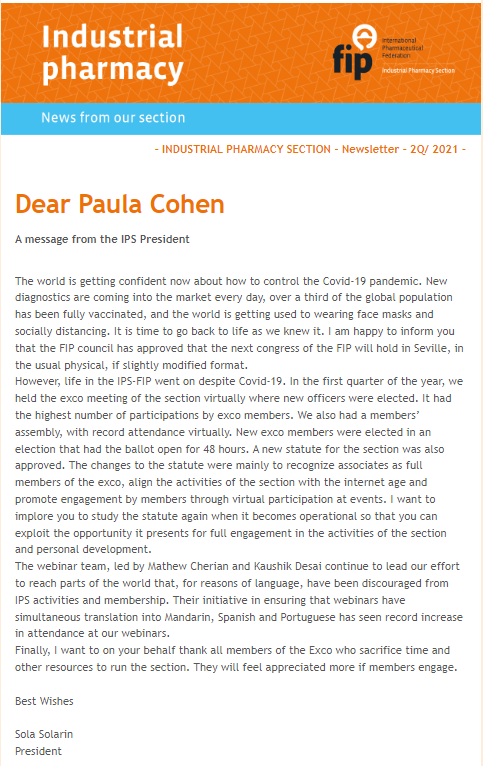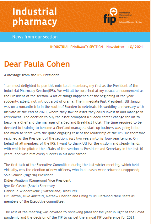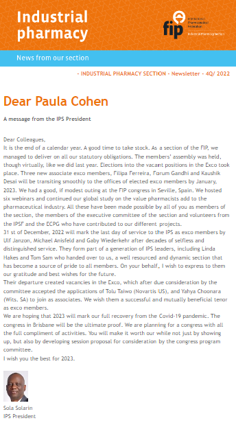 FIP makes it a priority to publish the latest developments in pharmacy practice, pharmaceutical sciences, related global news and prominent events. Our multi-media approach to keeping members, partners and peers informed of what is and will be affecting their area of practice or science is key to keeping information flowing through the FIP network.
