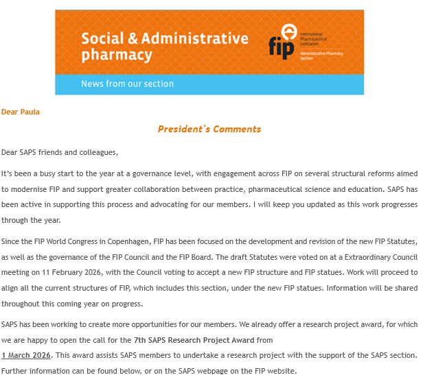 FIP makes it a priority to publish the latest developments in pharmacy practice, pharmaceutical sciences, related global news and prominent events. Our multi-media approach to keeping members, partners and peers informed of what is and will be affecting their area of practice or science is key to keeping information flowing through the FIP network.